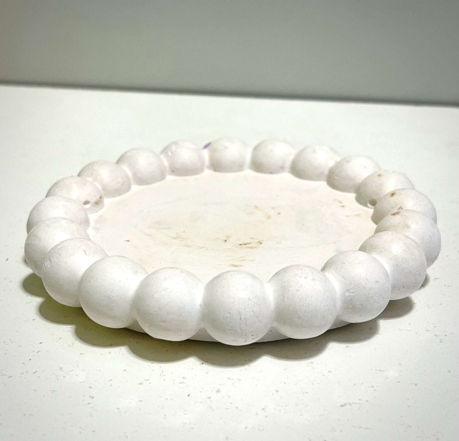 A smaller pebble tray designed to hold everyday essentials while adding a gentle decorative touch.