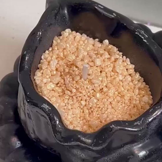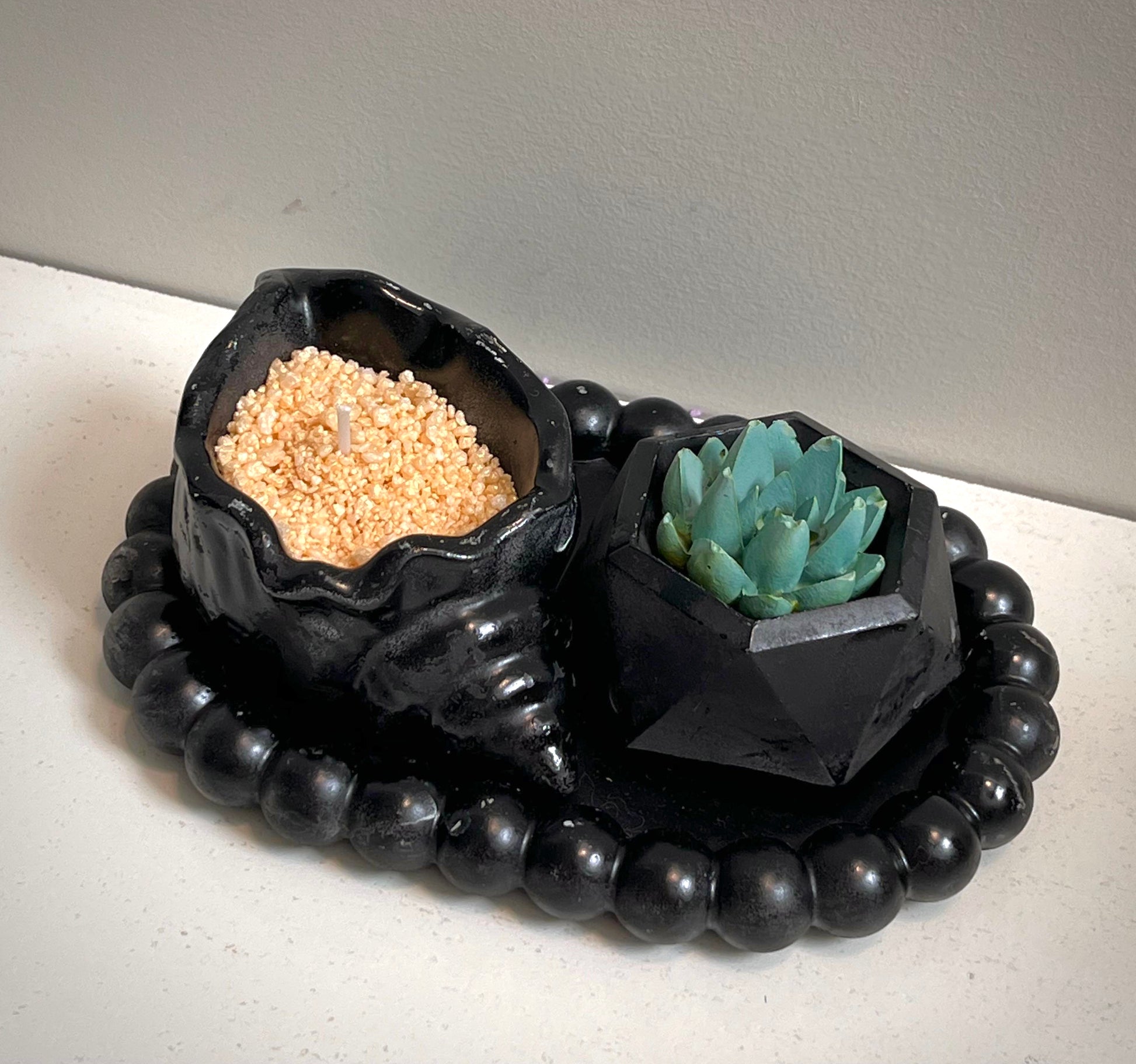 A trio of décor, candle and tray in chic black accents - timeless elegance.